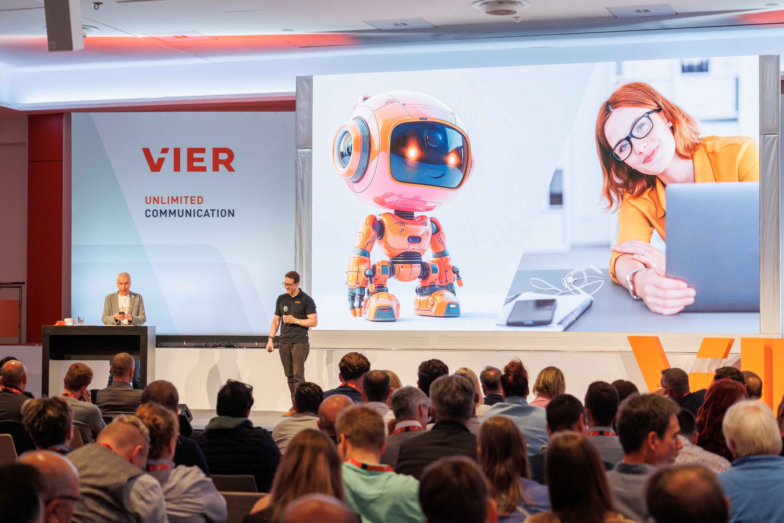 Die Fotos entstanden beim Event „Unlimited Communication“ von VIER GmbH im HCC Hannover Congress Centrum. Die Veranstaltung bringt Expert:innen, Kund:innen und Partner aus der Branche zusammen, um sich über aktuelle Entwicklungen rund um Künstliche Intelligenz, Kundenkommunikation und digitale Services auszutauschen. Neben inspirierenden Vorträgen, Panels und Live-Demos bietet das Event vor allem Raum für Networking und praxisnahe Einblicke in die Zukunft der Kommunikation. Die Bildserie dokumentiert die Atmosphäre, die Speaker auf der Bühne sowie die Begegnungen und Gespräche zwischen den Teilnehmenden